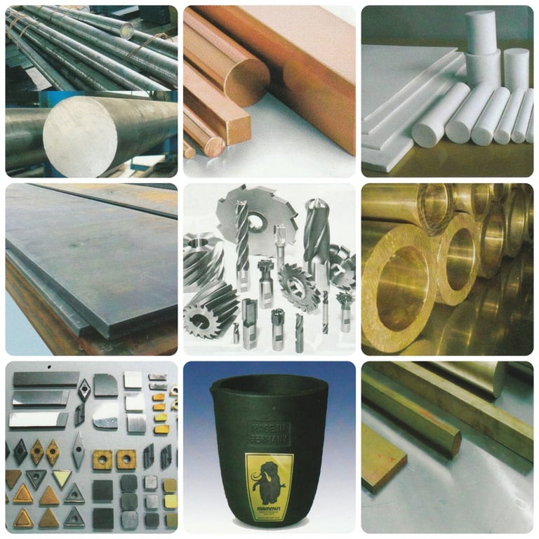 Materiales ferrosos y no ferrosos de calidad, herramientas industriales de corte y medición